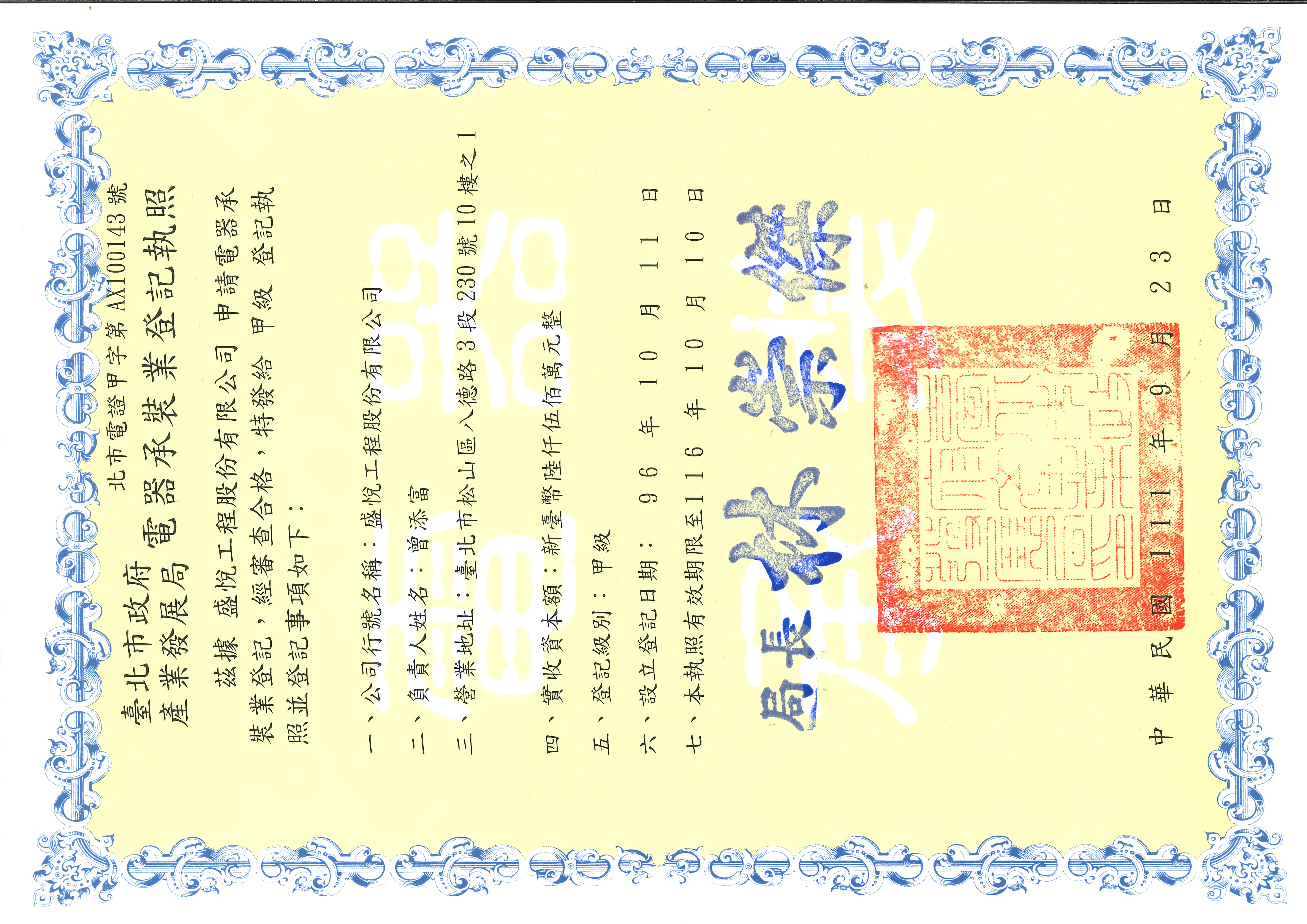 盛悅工程股份有限公司成立於2007年3月22日,是由一群具有豐富工程經驗、高度專業知識背景且有理想的團隊所組成。